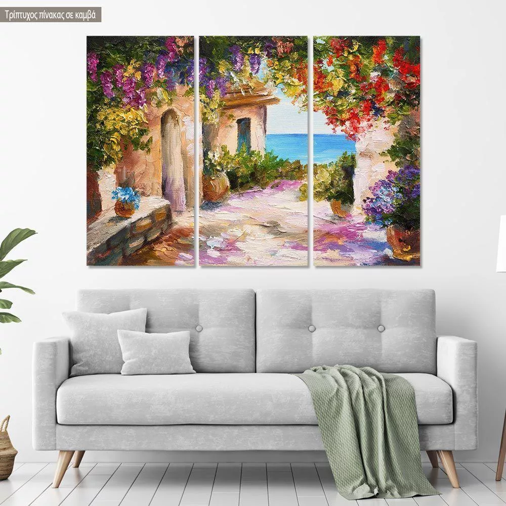 Canvas print House near the sea colorful flowers
