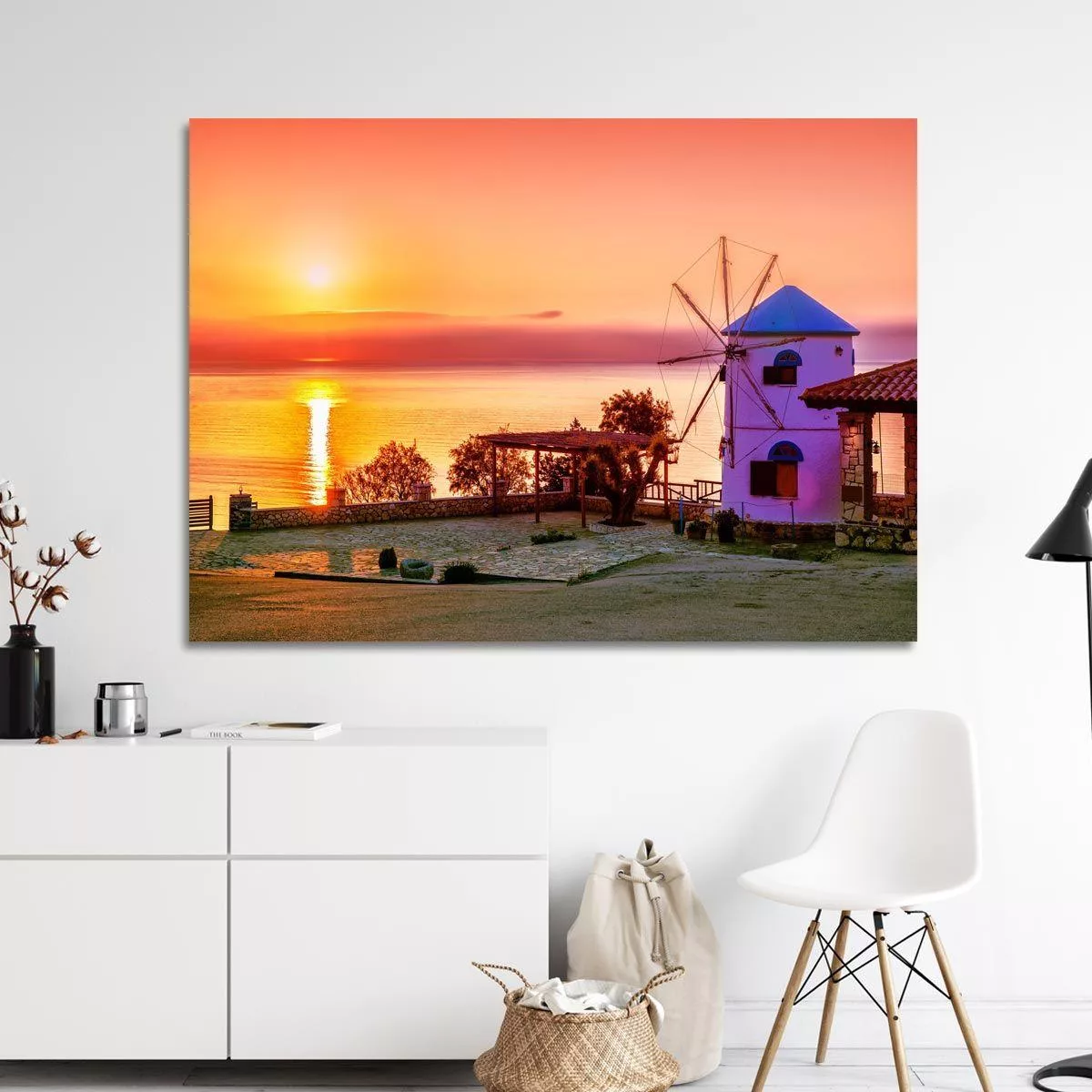 Canvas print Traditional windmill against sunrise, Zakynthos