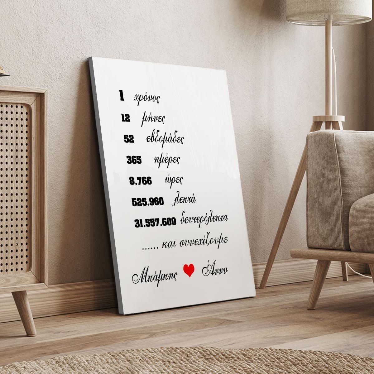 Canvas print Anniversary years months weeks days hours minutes seconds