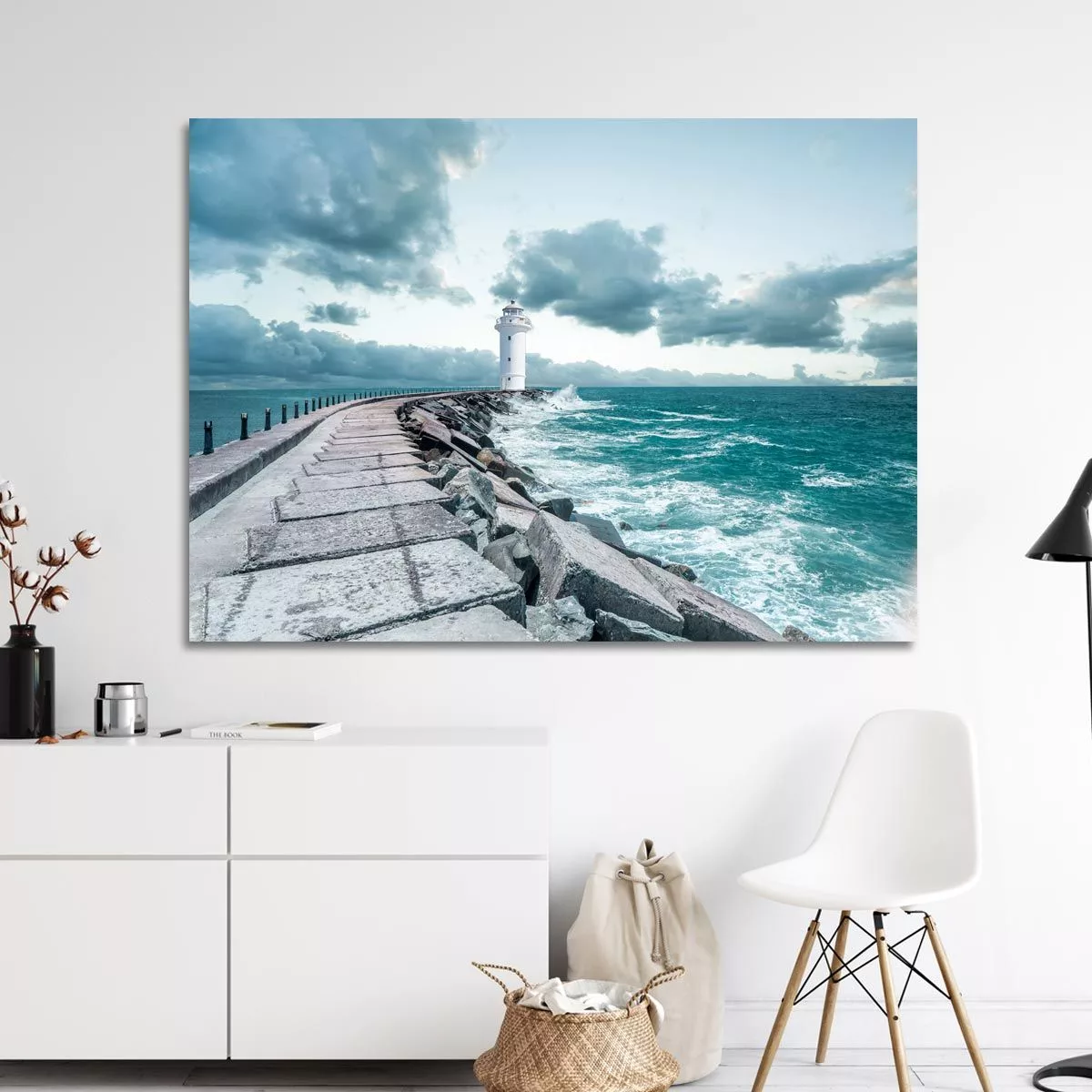 Canvas print lighthouse, love is the way, 3 panels