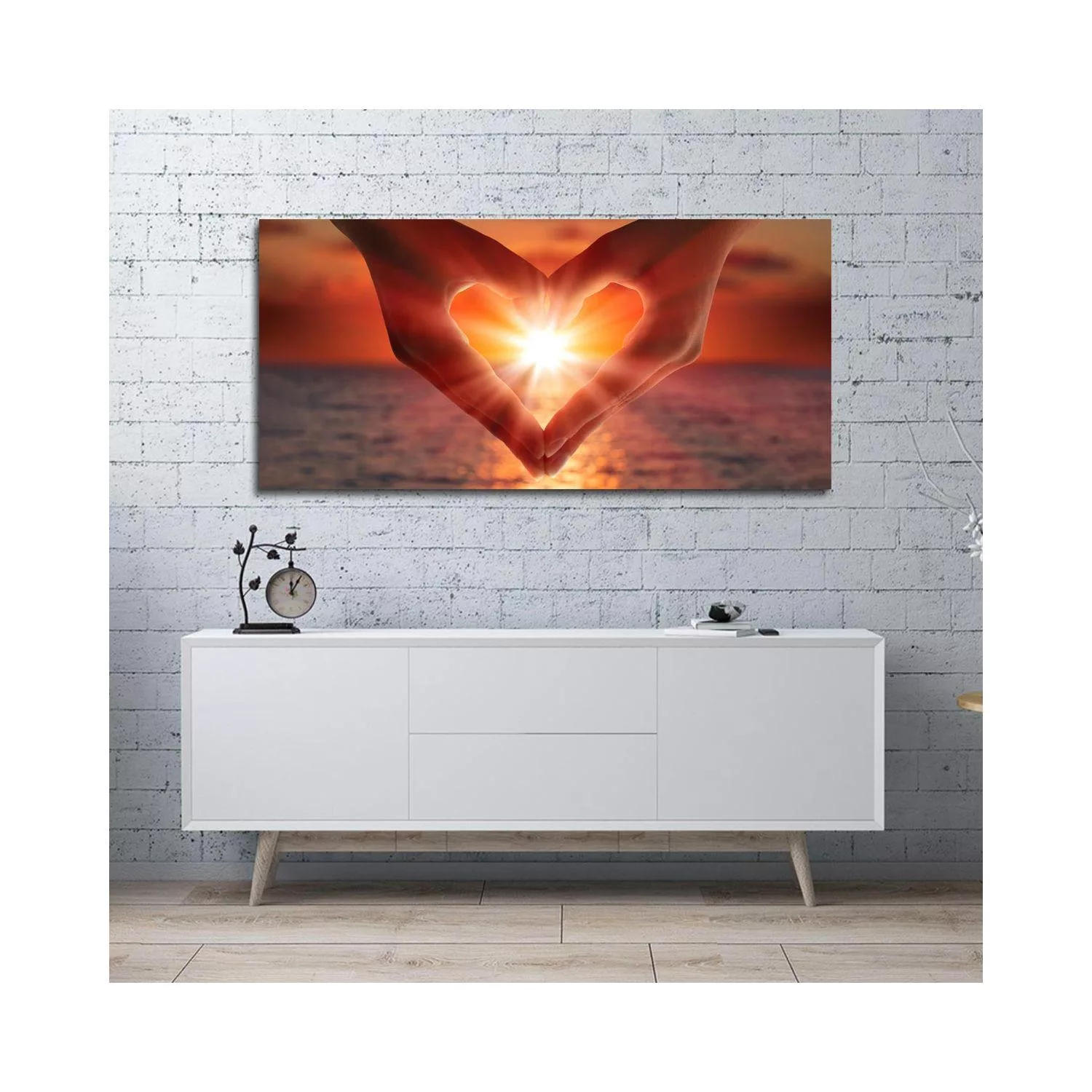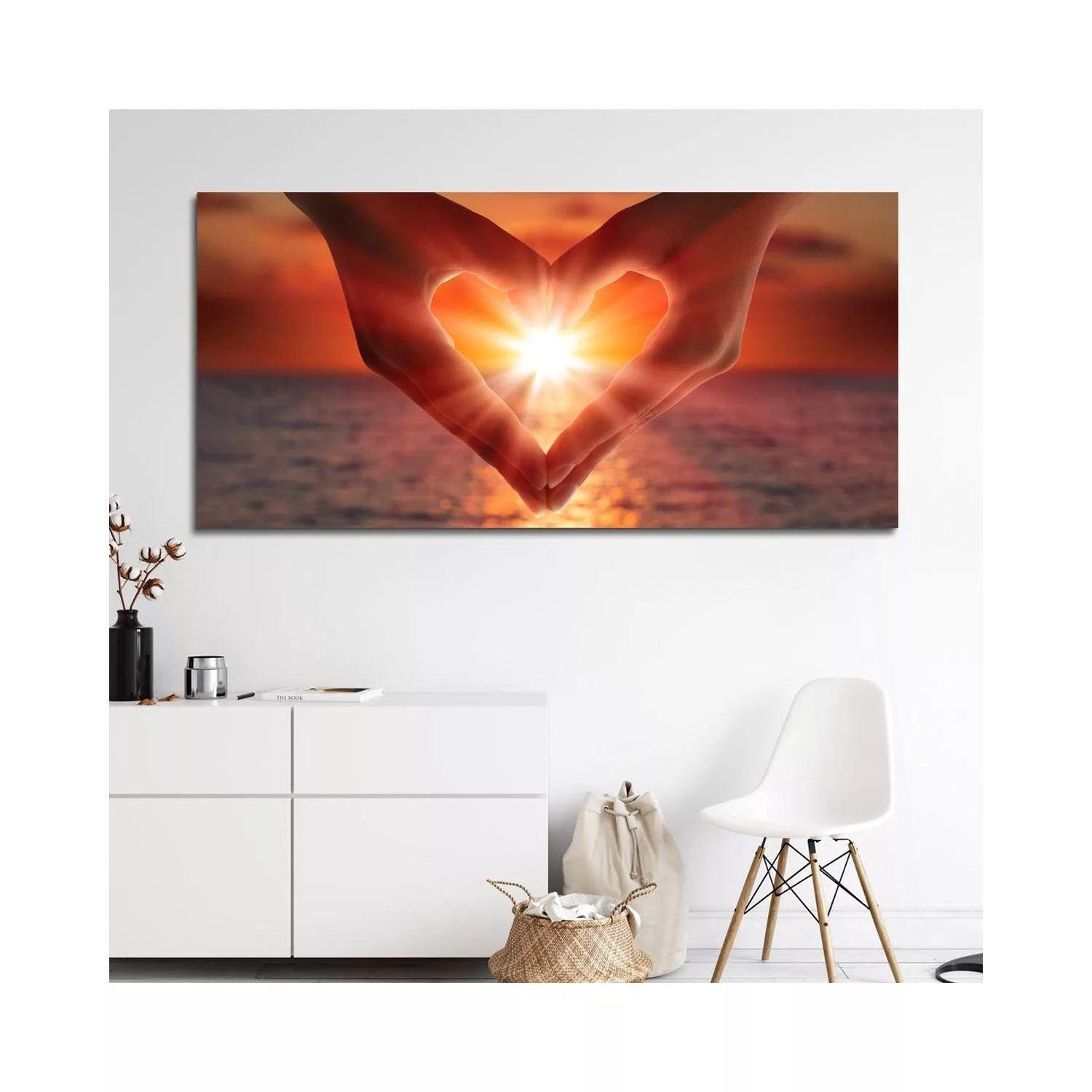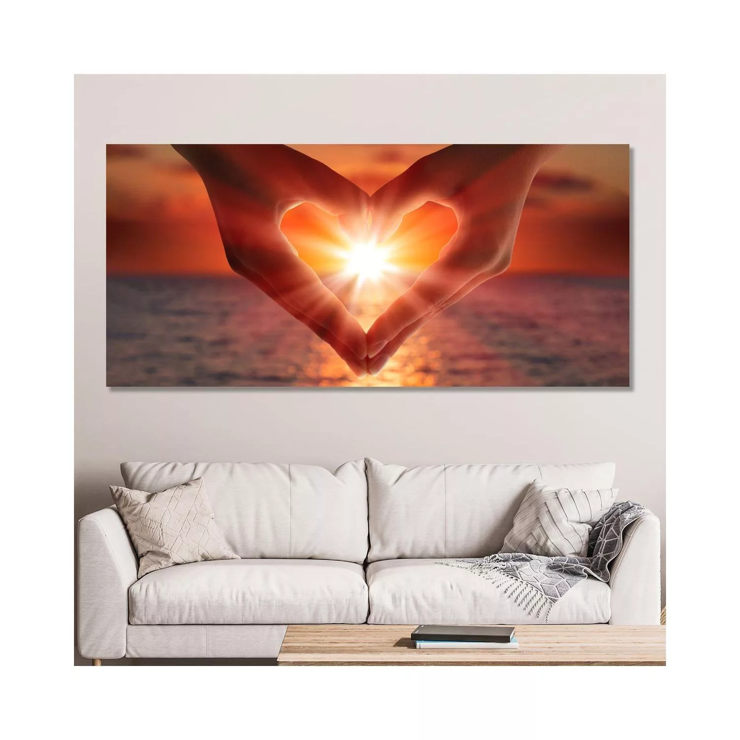 Canvas print Sunset in heart heads, panoramic