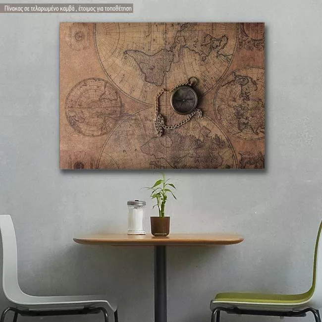 Canvas print Compass on old map