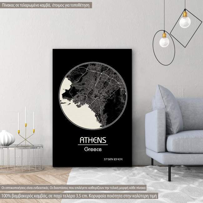 Canvas print Athens Map, Cartography BW