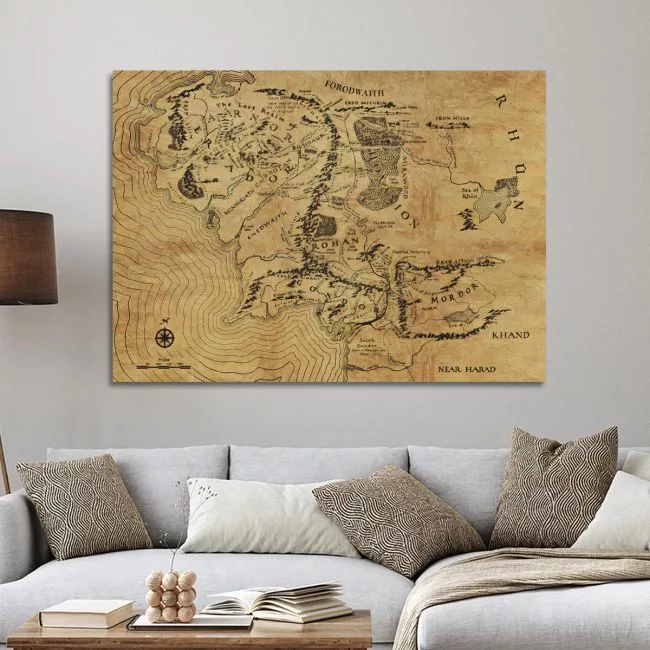 Middle Earth map reart, canvas print
