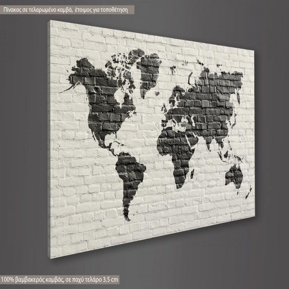 Canvas print White Bricks Embed World Map