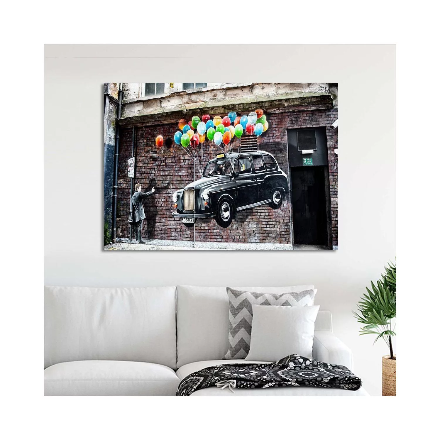 Canvas print Baloon taxi street art