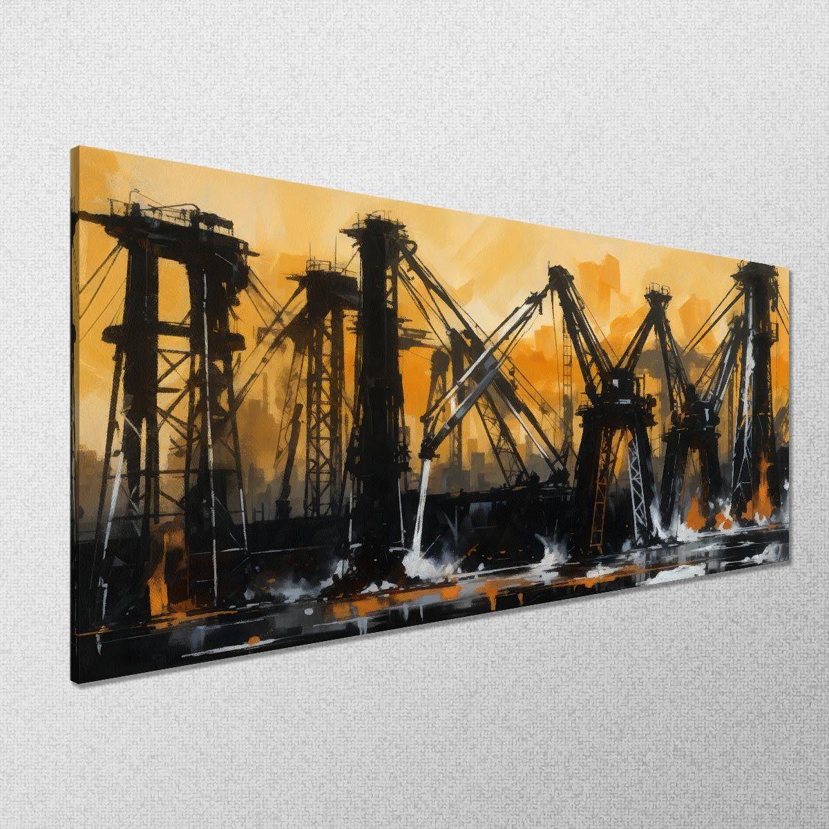 Canvas print Harbor cranes, panoramic