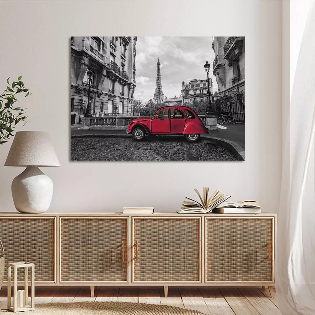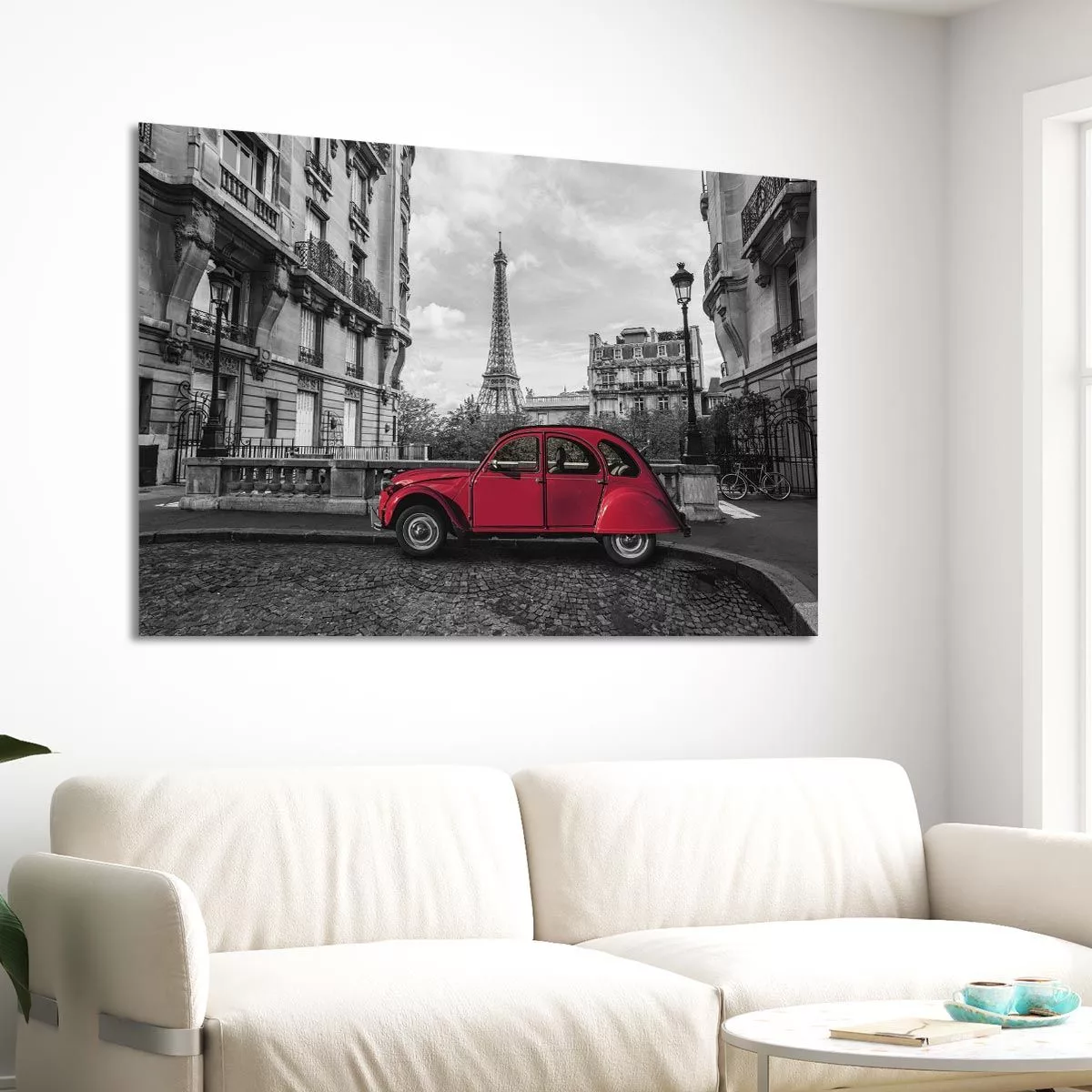 Canvas print Paris, Eiffel tower with 2CV multicolor