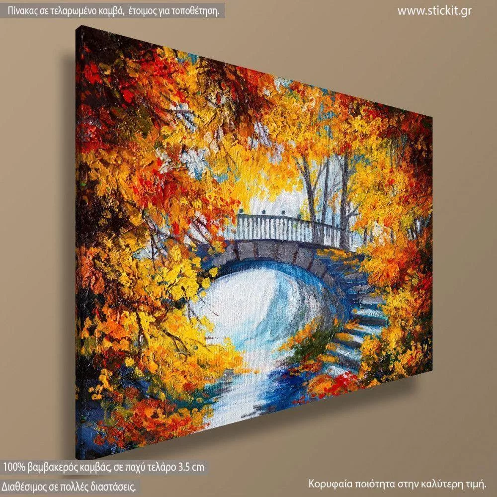 Canvas print Autumn forest, Autumn forest with a road and a bridge