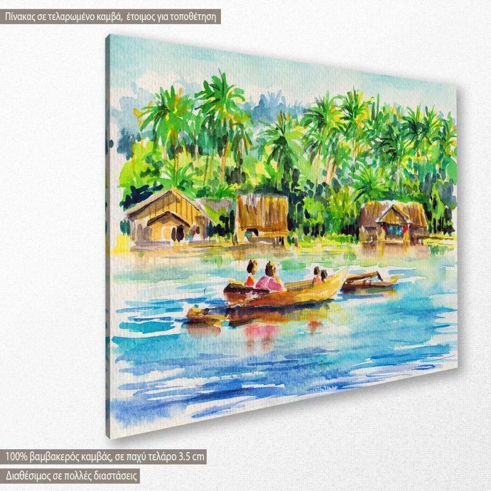 Canvas print Boat on tropical river