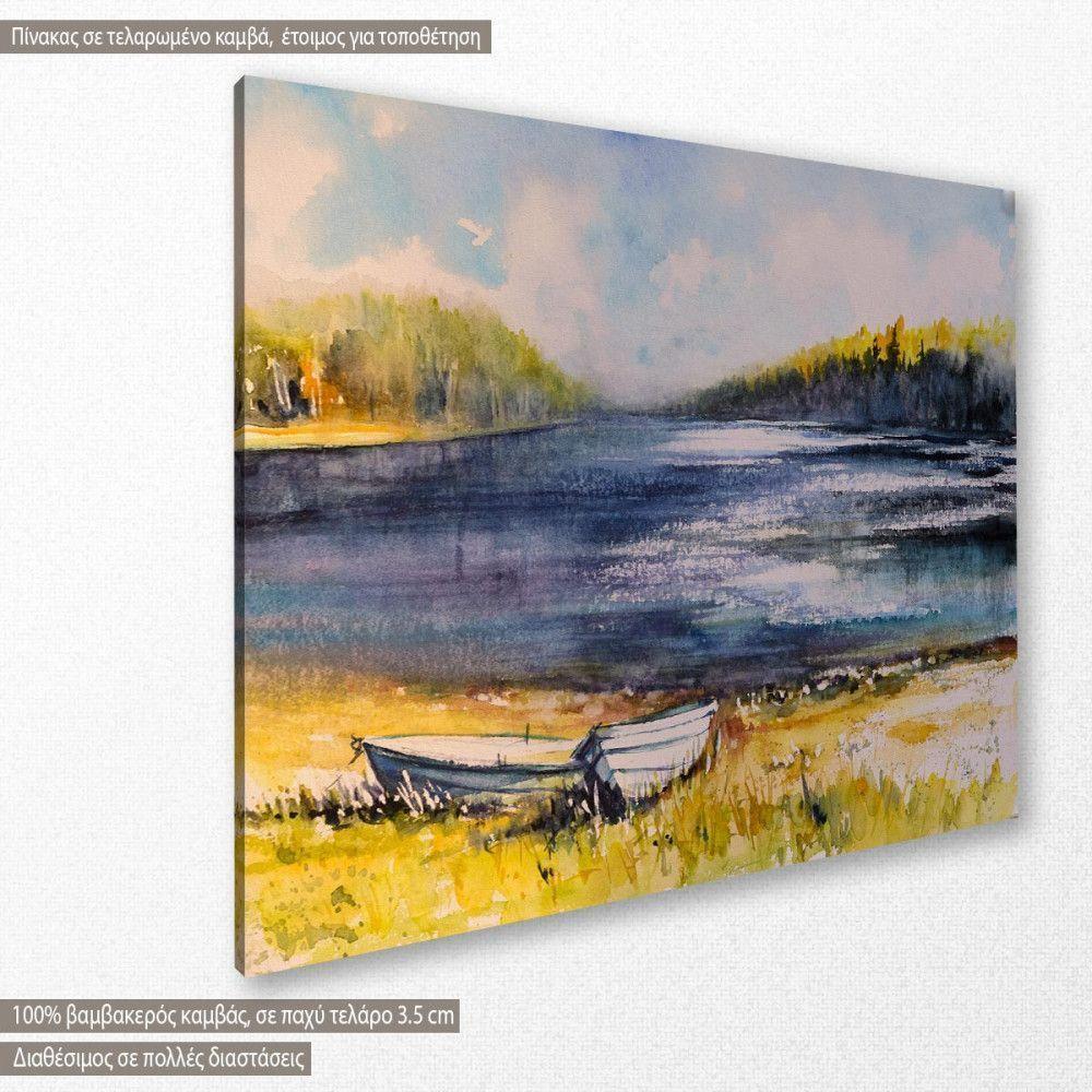 Canvas print Boats, Lake, Fishing boats on lake coast