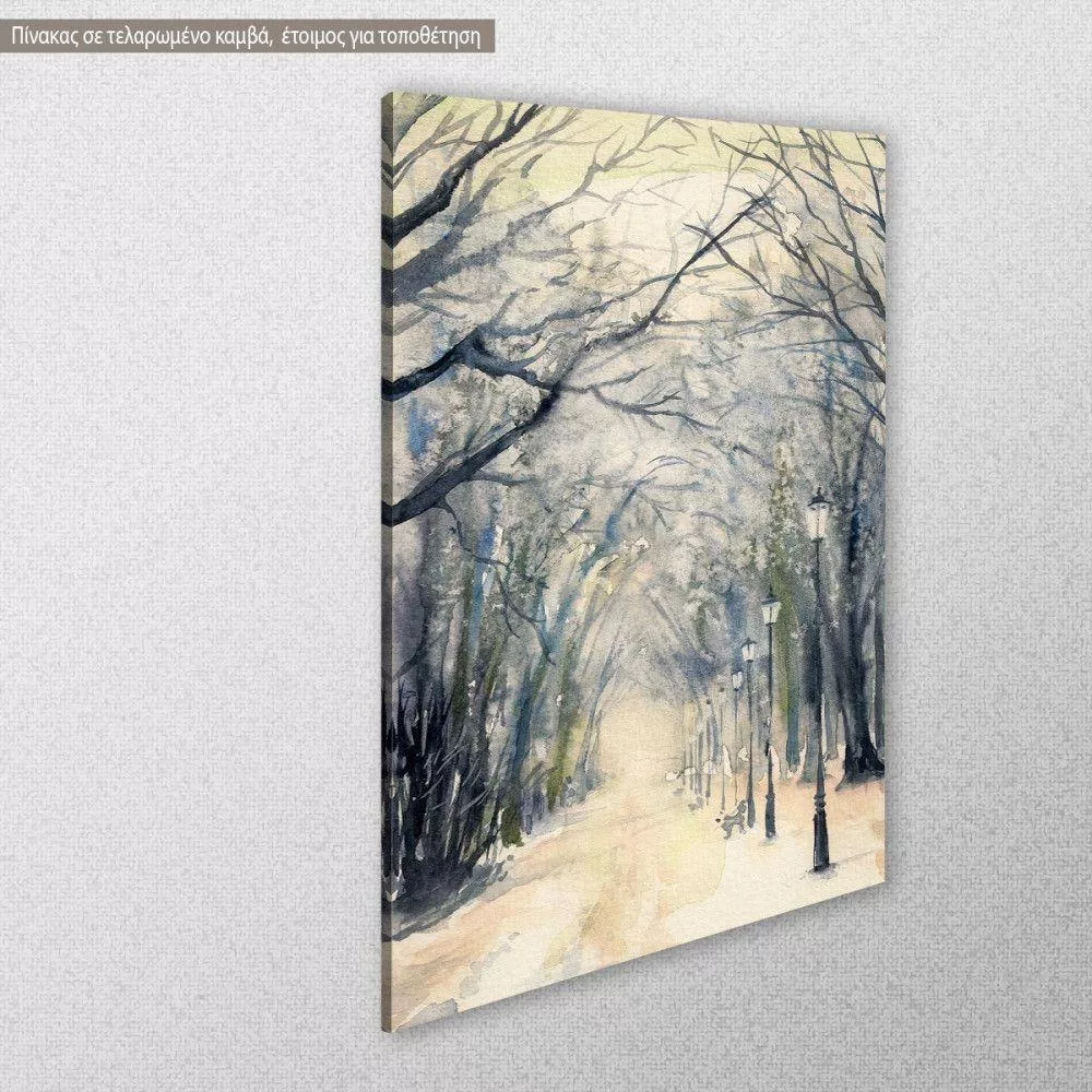 Canvas print Footpath in a winter city park