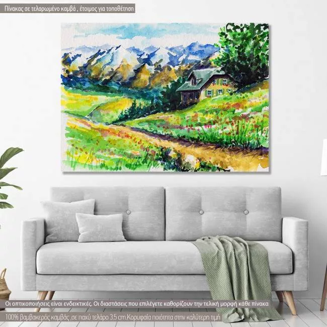 Canvas print Landscape with alpine house
