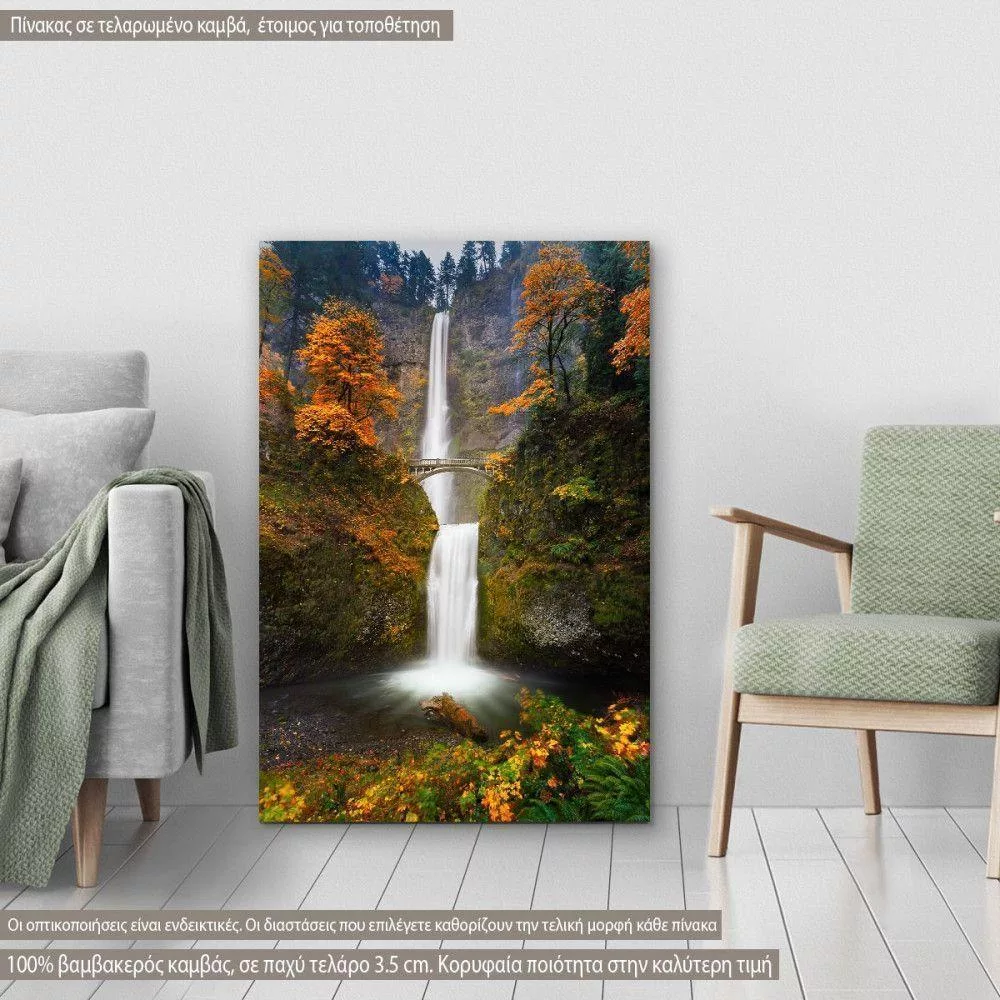 Canvas print Multnomah falls in autumn colors