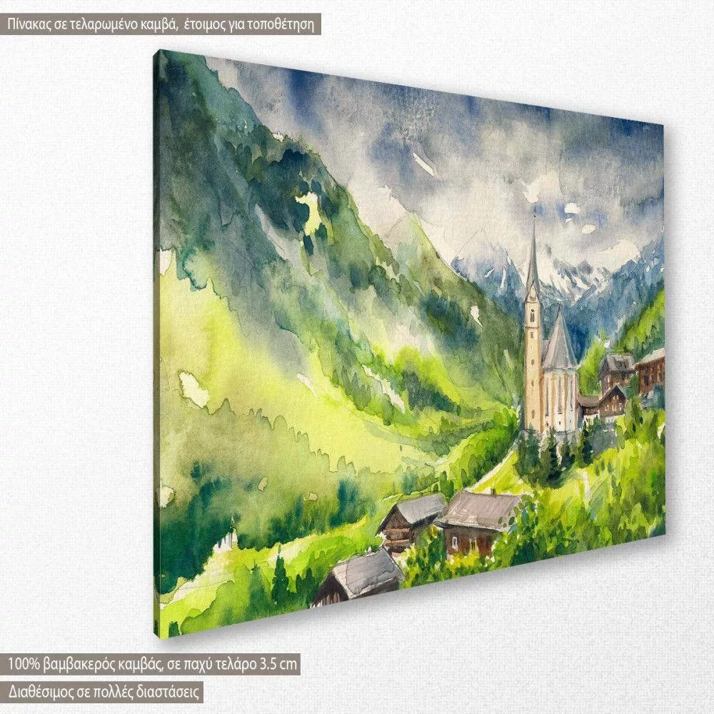 Canvas print Village at the foot of the Alps