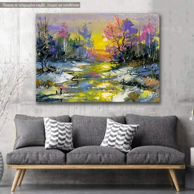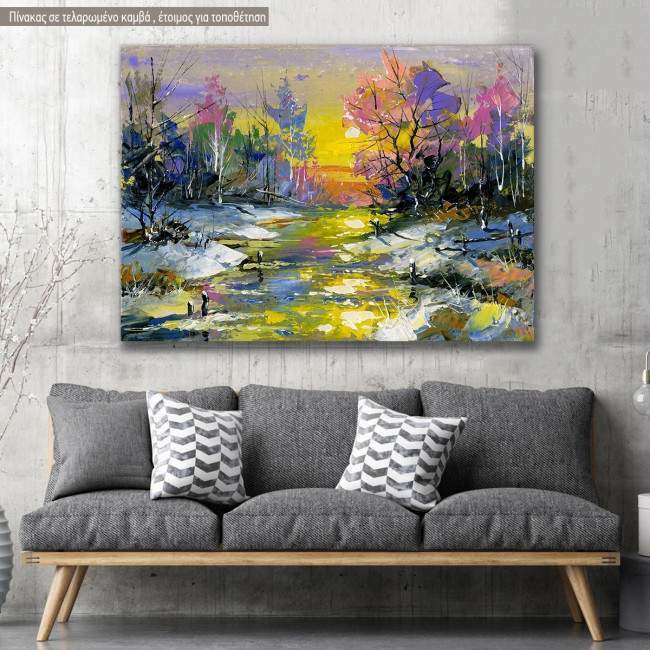 Canvas print Scenery at forest, Winter landscape with the wood river