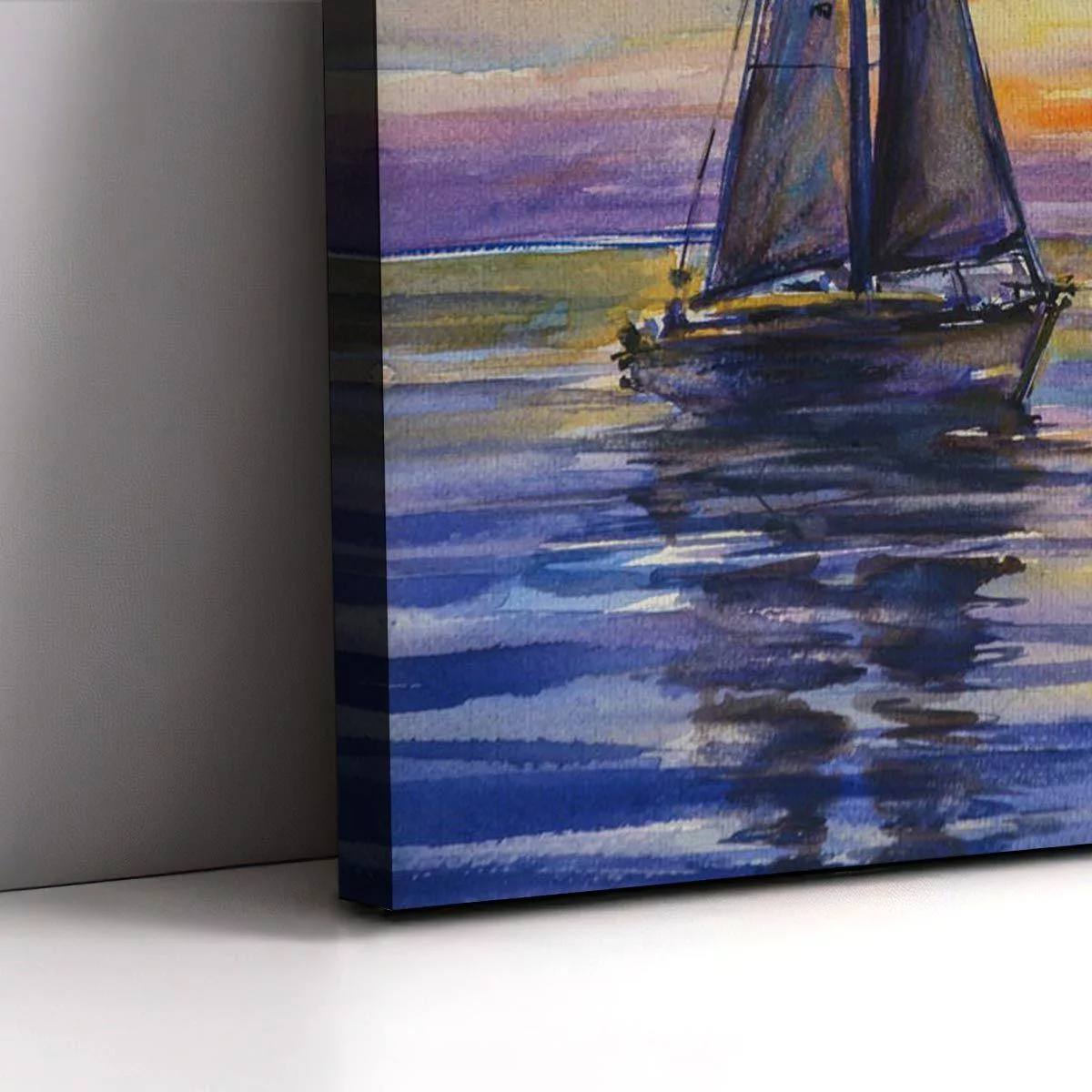 Canvas print Yacht sailing against sunset