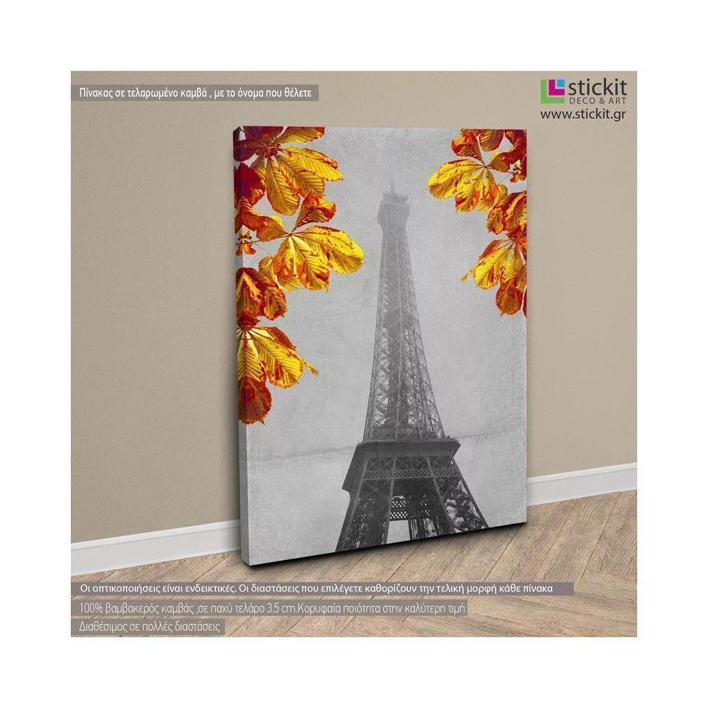 Canvas print Paris, Eiffel tower yellow leaves