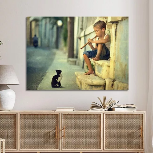 Canvas print The piper and the cat