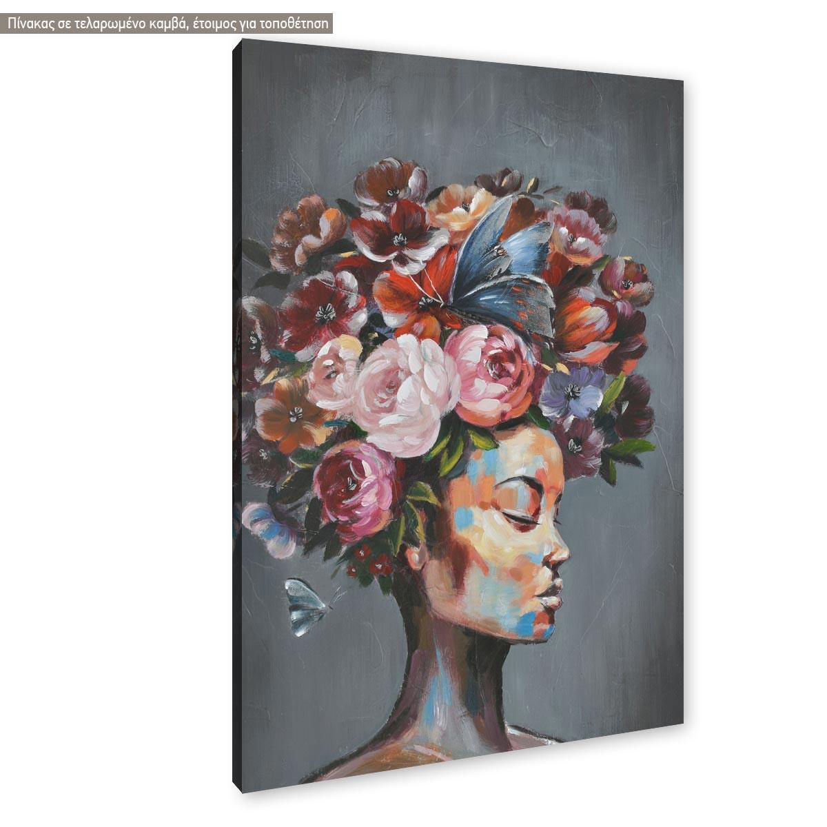 Canvas print, Flowered woman on gray