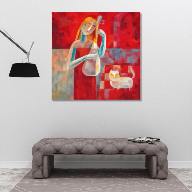 Canvas print Music and cat, square