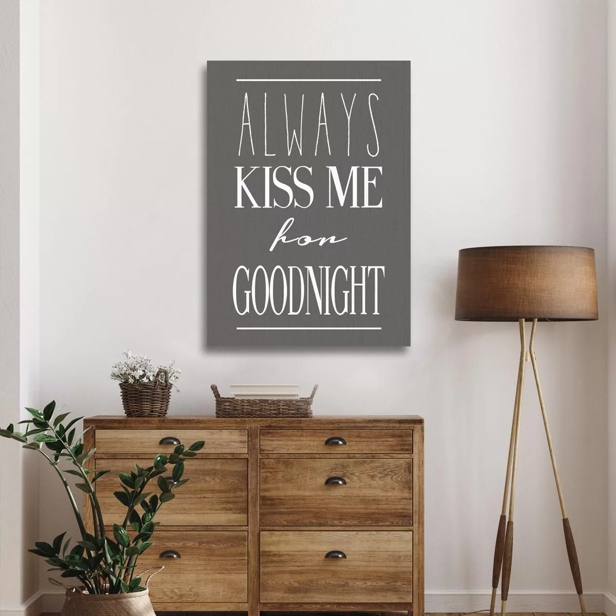 Canvas print Always kiss me for goodnight Gray