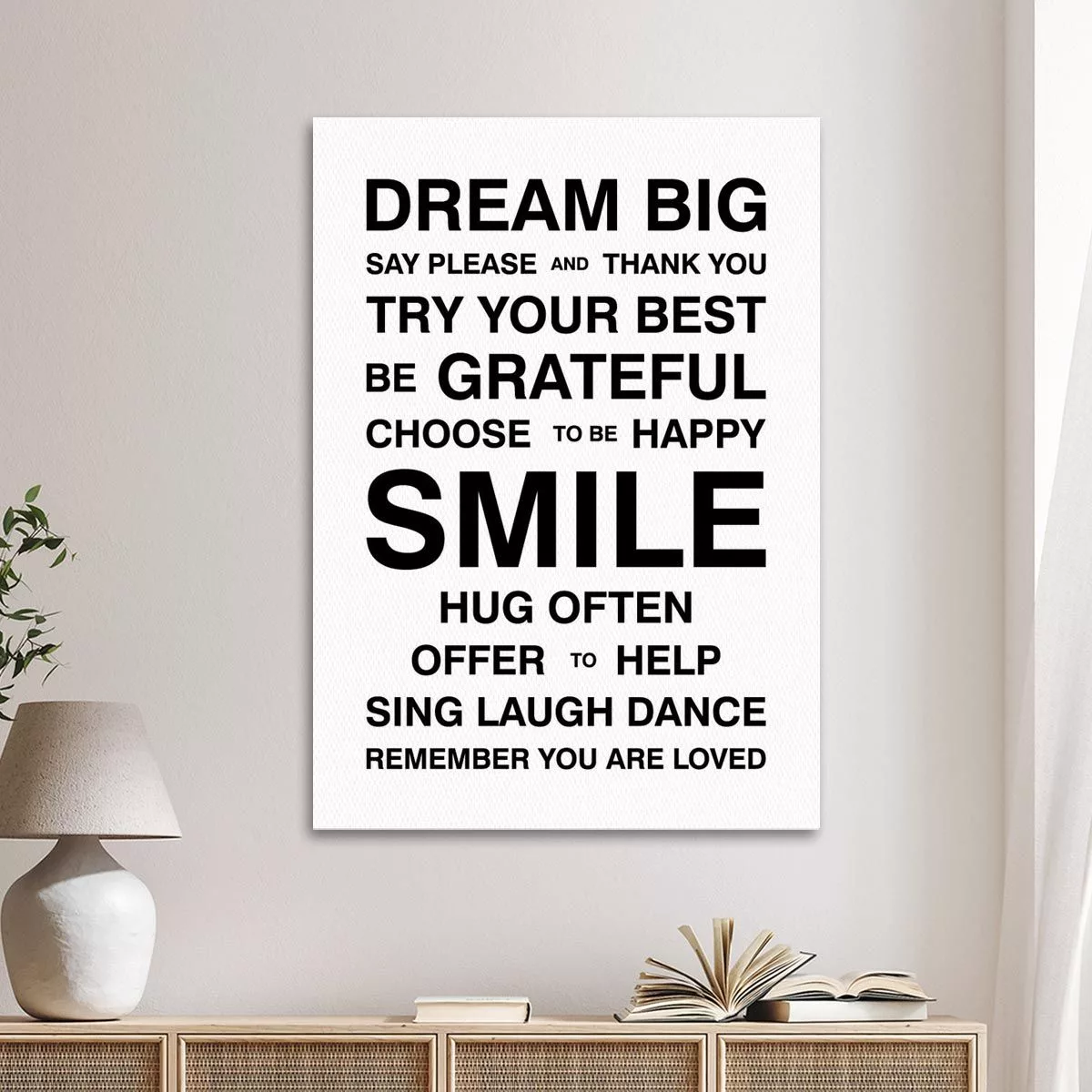 Canvas print Dream Big, house rules White Black