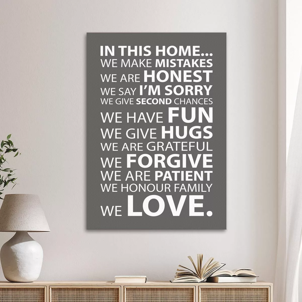 Canvas print In this home, house rules Gray brown