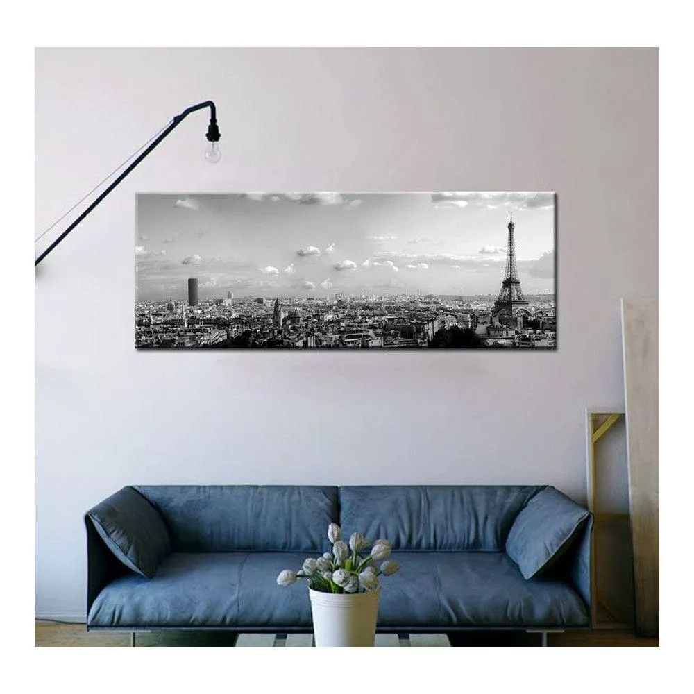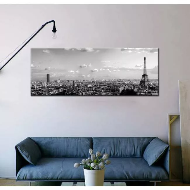 Canvas print Paris skyline grayscale, panoramic