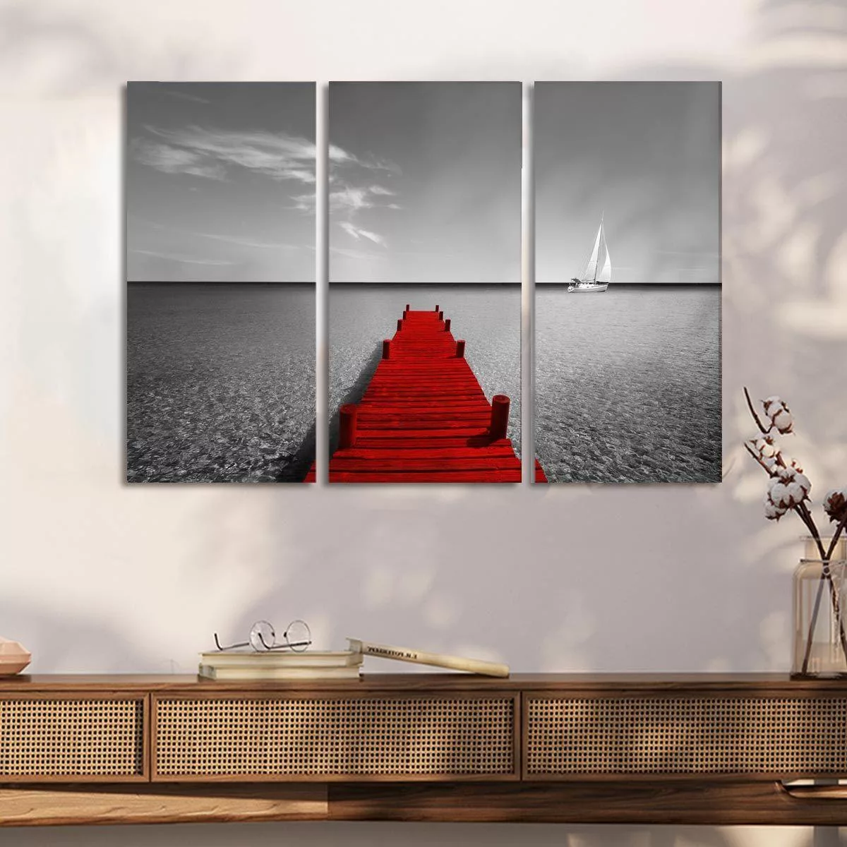 Canvas print Red dock, 3 panels