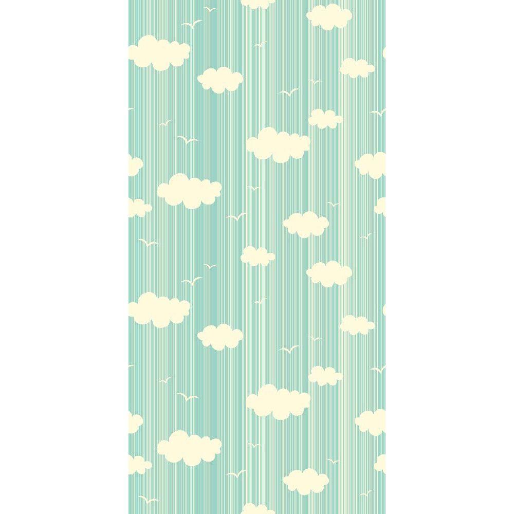 Door sticker Clouds and Birds pale green