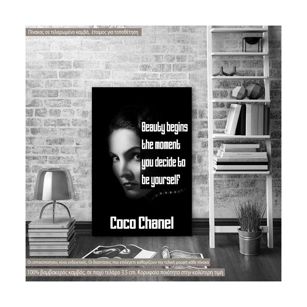 Canvas print offer Beauty begins..., Coco Chanel