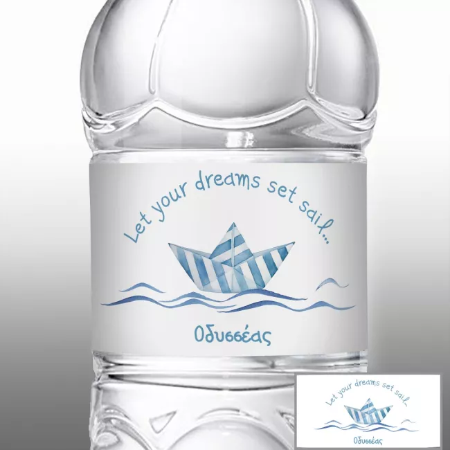 Don't forget to save your customization to be able to add to cartAdd a tender, nautical feel to your event decor with our personalized paper boat labels. The watercolor design with the striped boat and the message 'Let your dreams set sail...' creates a dreamy atmosphere, perfect for celebrating special moments.