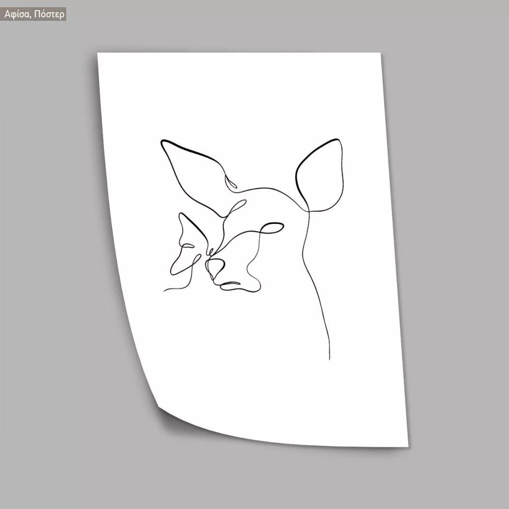 Animals line art, deer with butterfly, poster