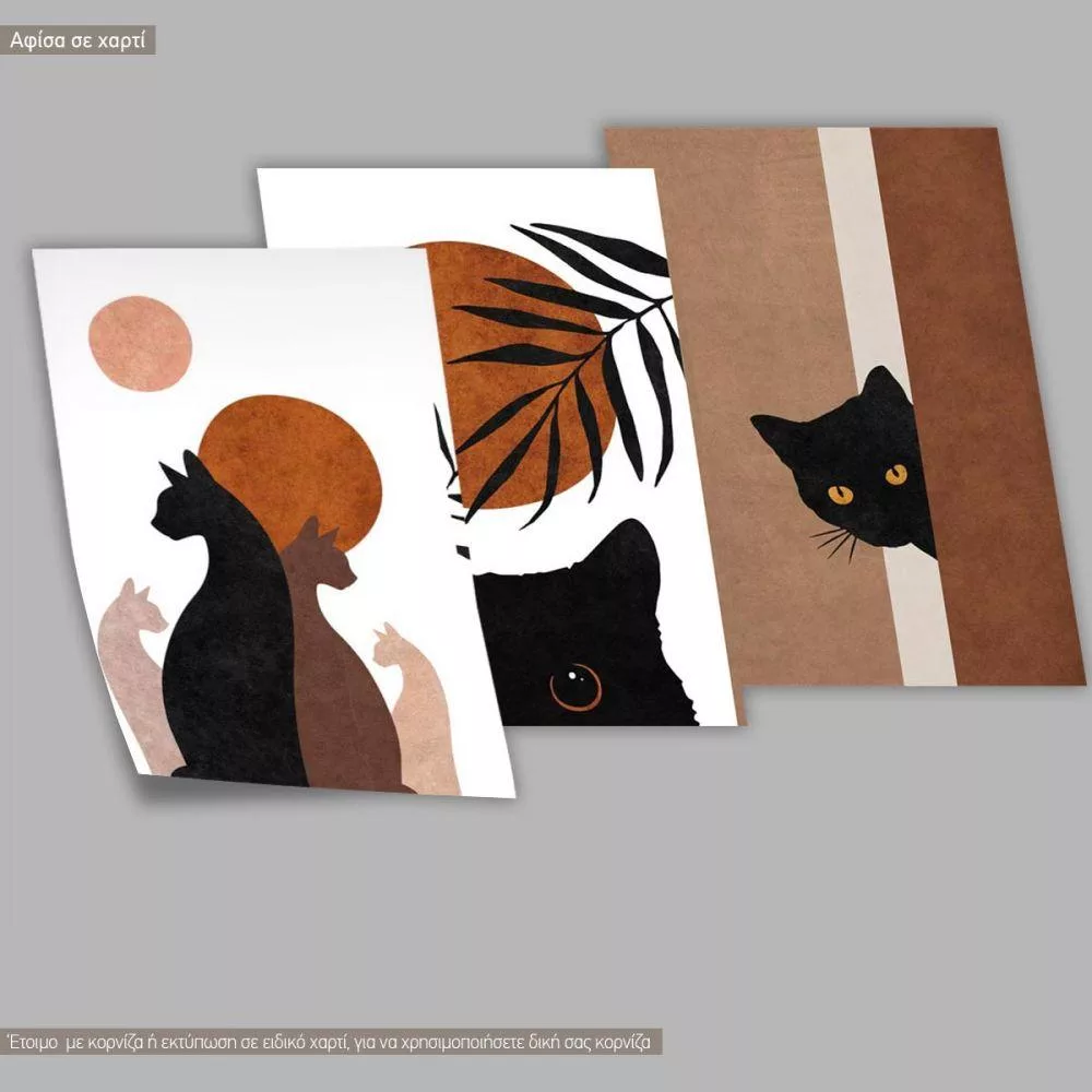 Curious cats, three panels poster