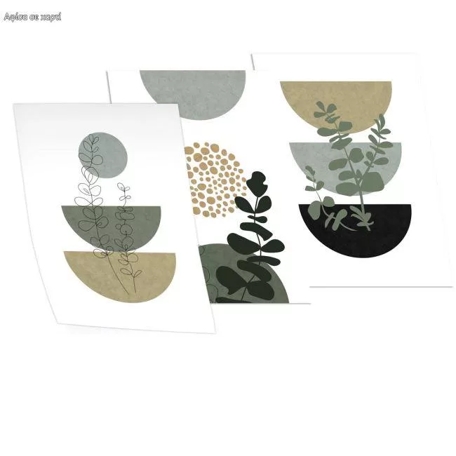 Boho Botanical Beige Green, three panels poster