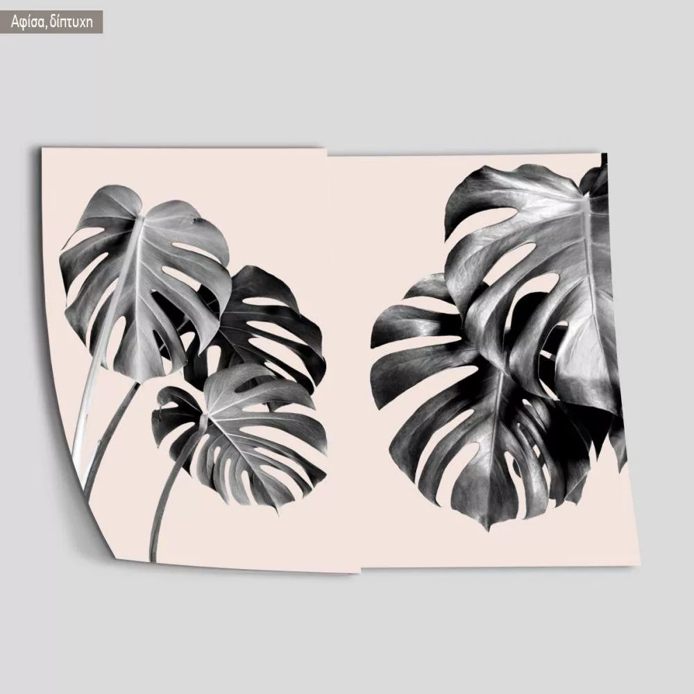 Palm leaves on pale pink, poster, two panels