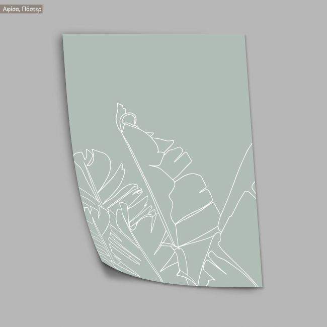 White line leaves on green, poster