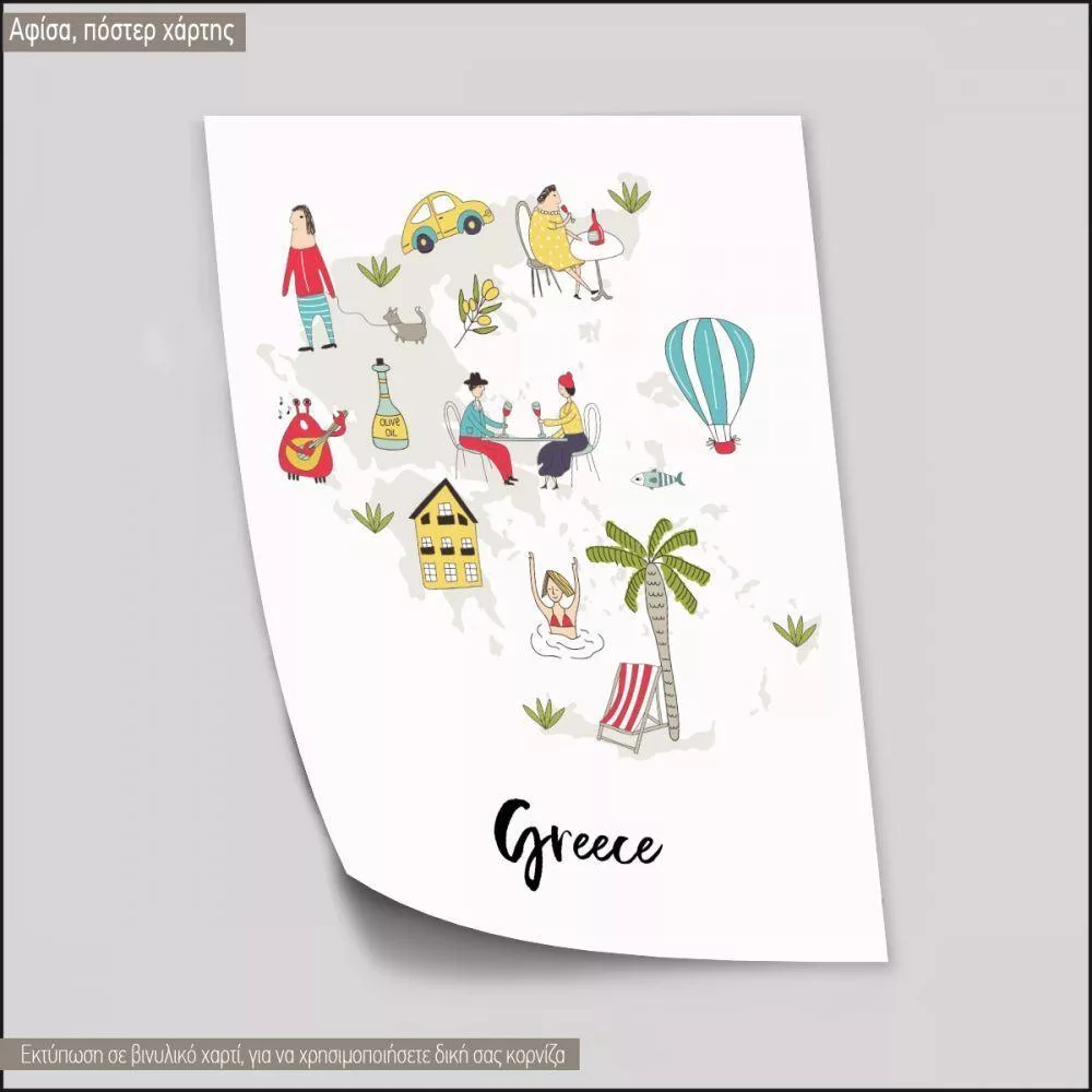 Customs and culture Greece map, poster