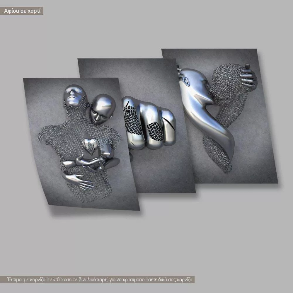 Stength 3d grayscale, three panels poster