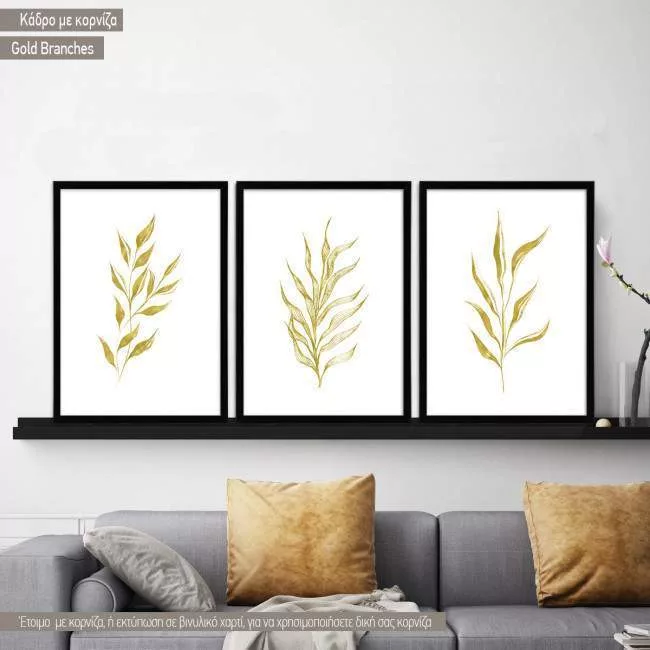 Gold Branches I, τρίπτυχο, τρίπτυχο, Αφίσα, κάδρο, καμβάς