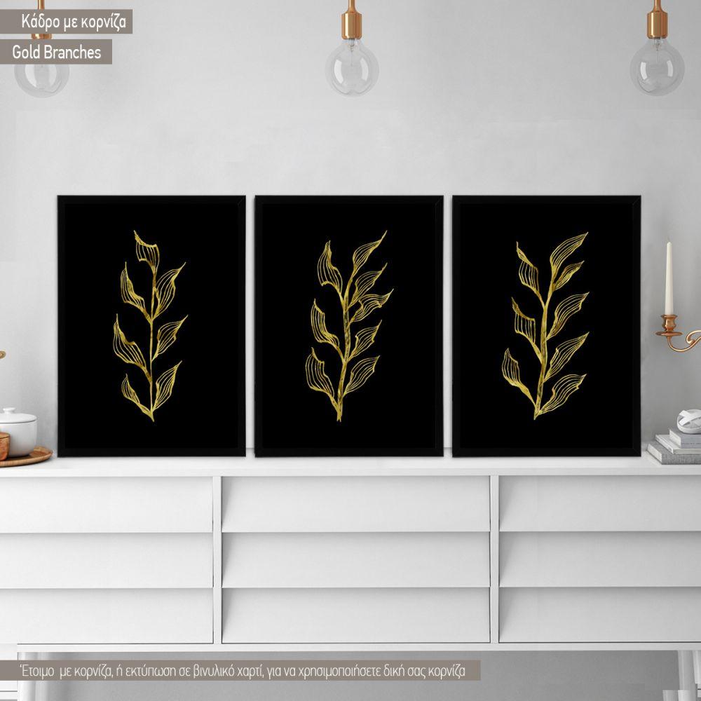 Gold Branches II, τρίπτυχο, Αφίσα, κάδρο, καμβάς