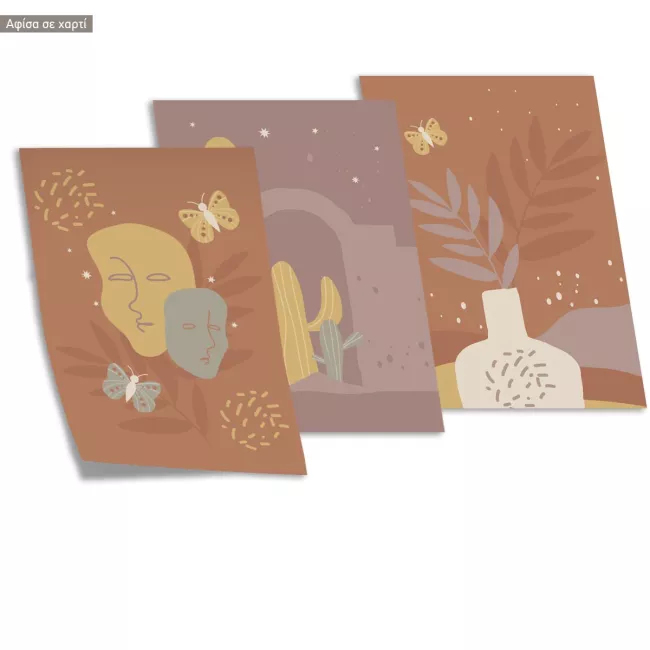 Boho Masks Cactus and Flowers, three panels poster