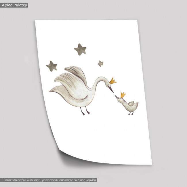 Baby swan watercolor, poster