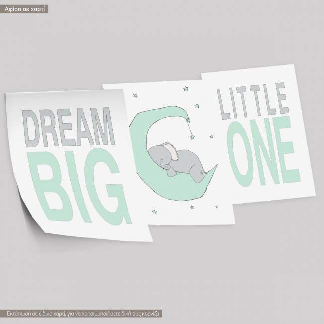 Kids canvas print Dream Big Little One, little elephant at moon, 3 panels