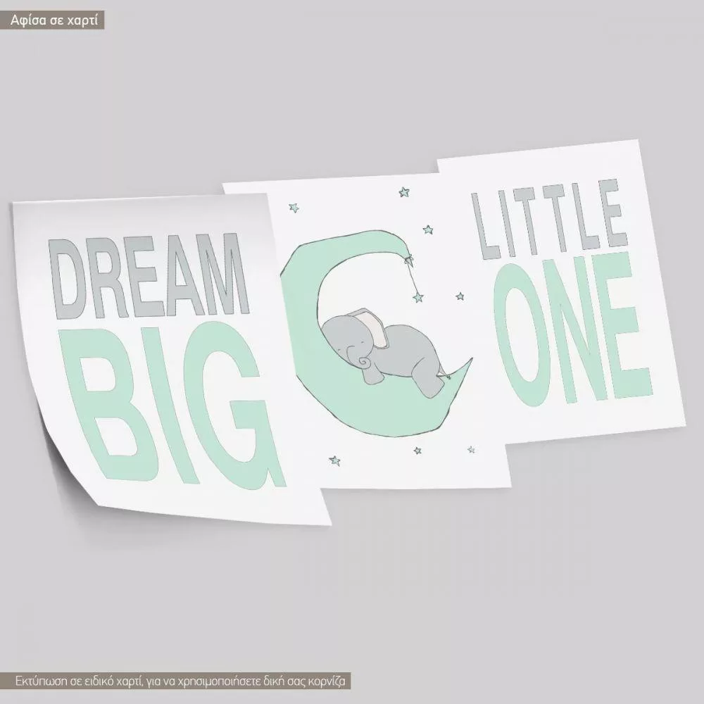 Kids canvas print Dream Big Little One, little elephant at moon,3 panels