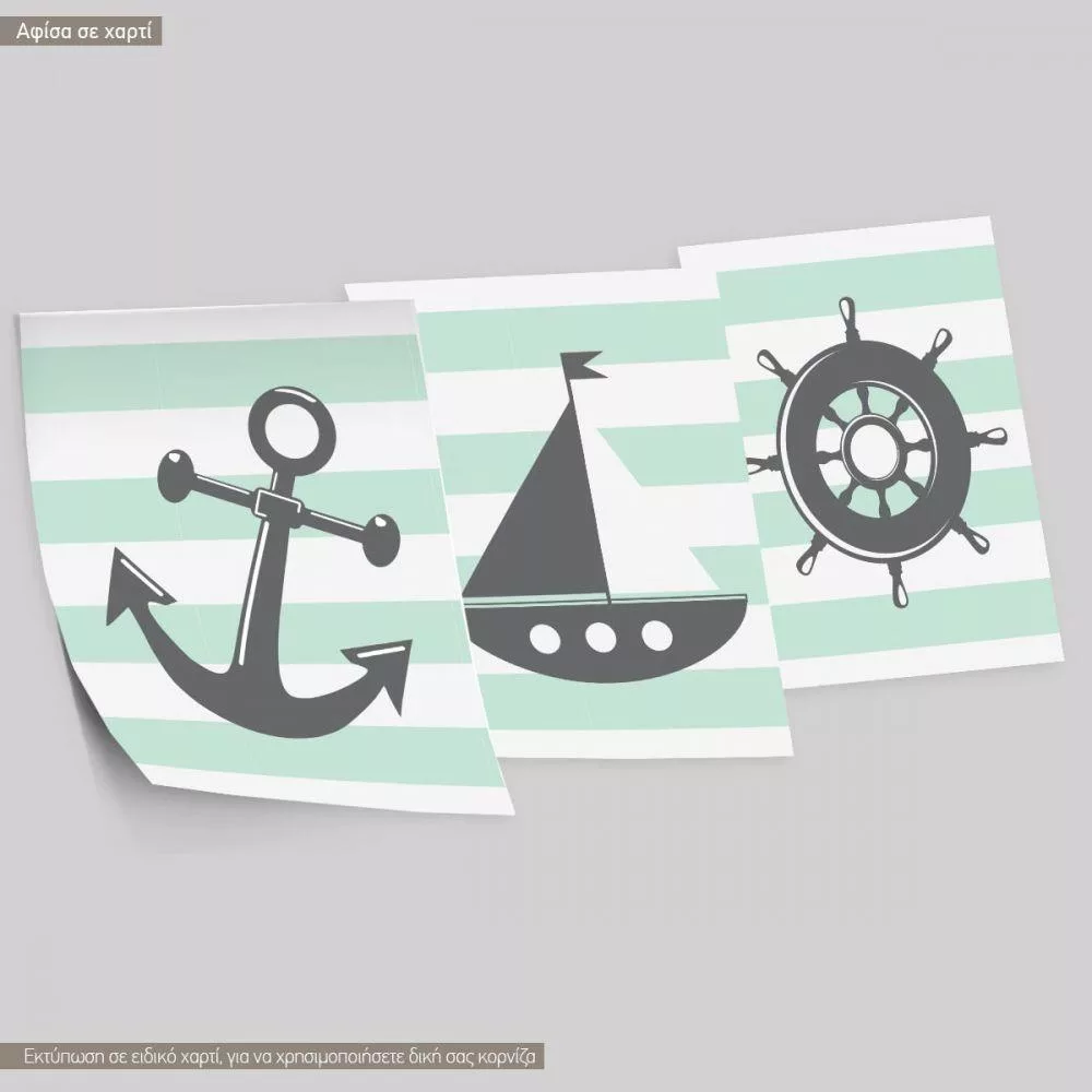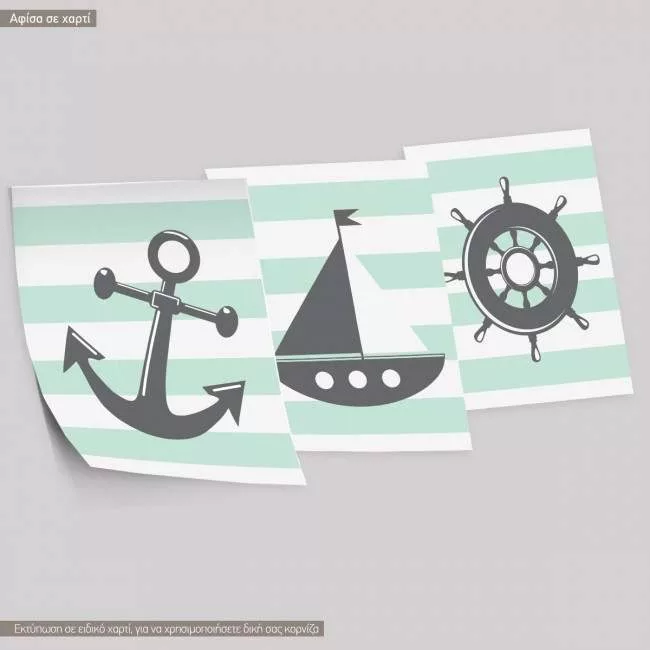 Kids canvas print nautical theme, 3 panels