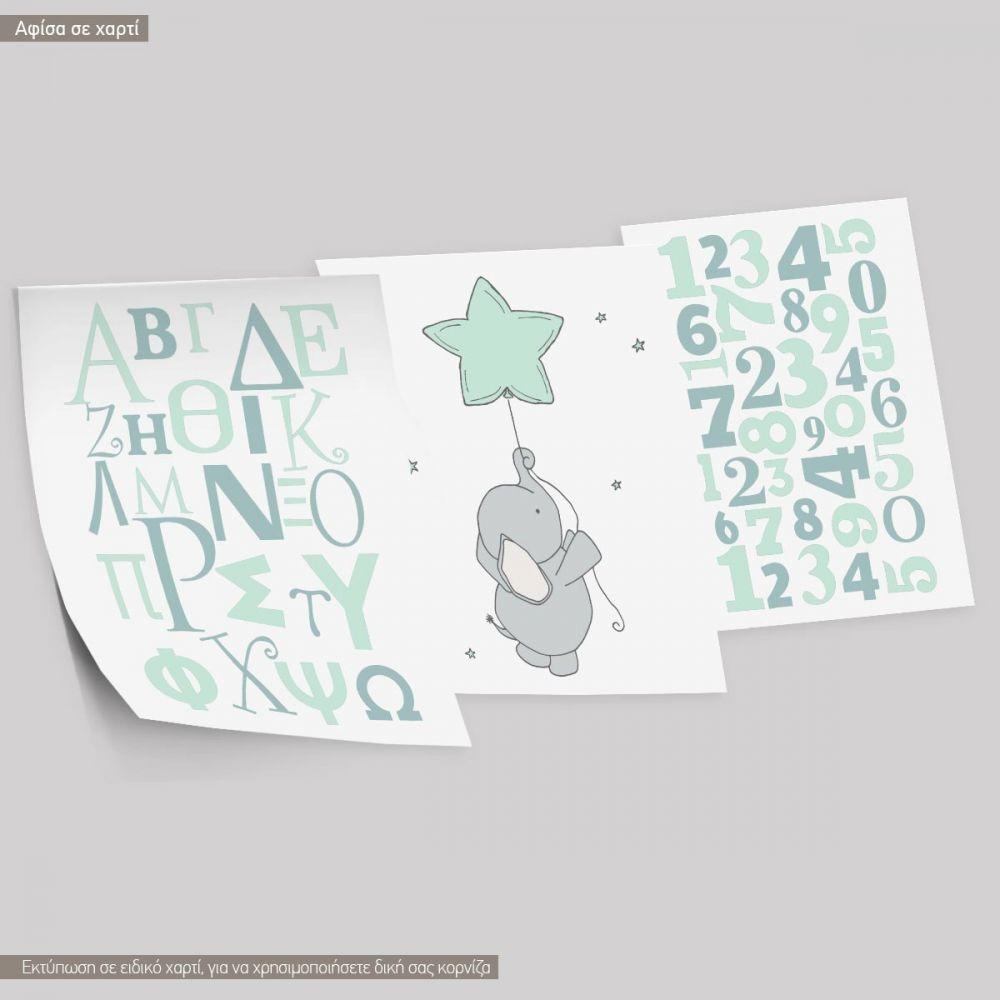 Kids canvas print Reach for the stars, little elephant stars, 3 panels