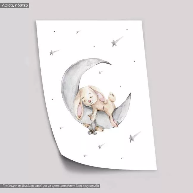 Cute bunny sleeping on the grey moon, poster