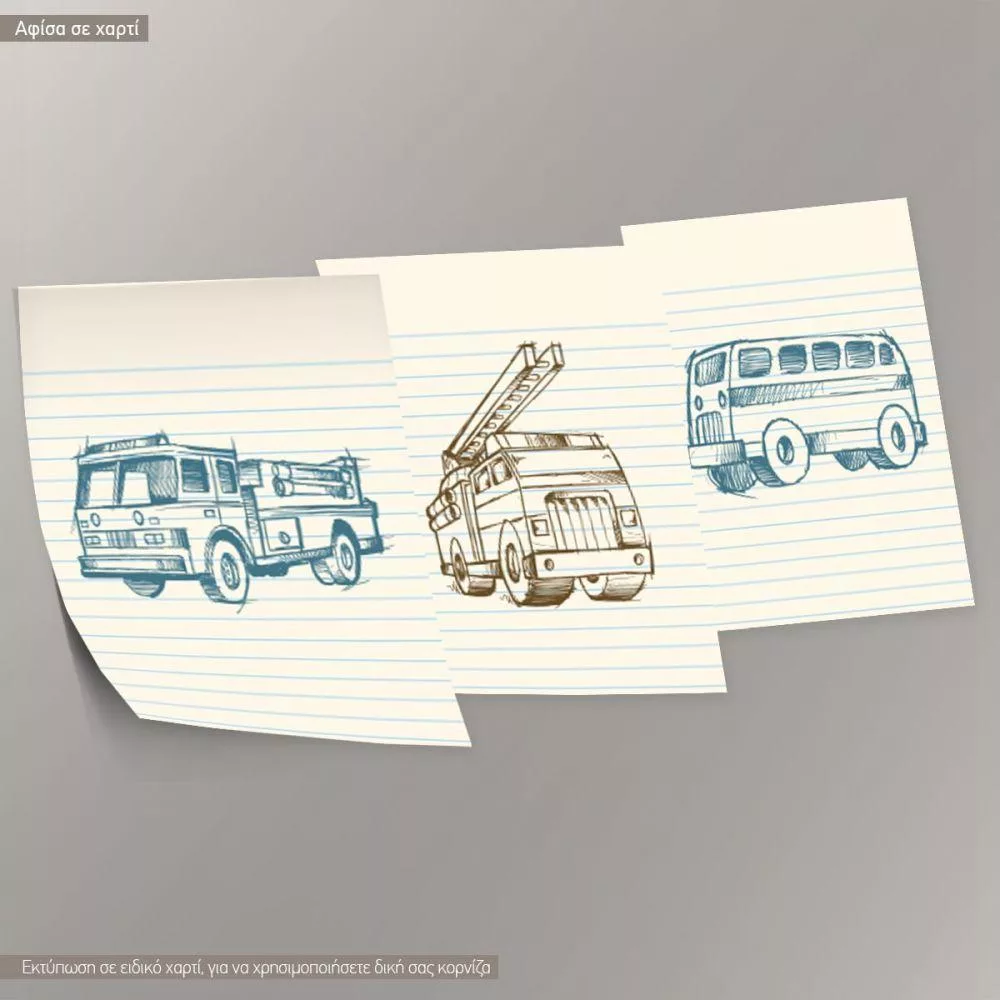 Kids poster, Rescue squad, sketch, 3 panels